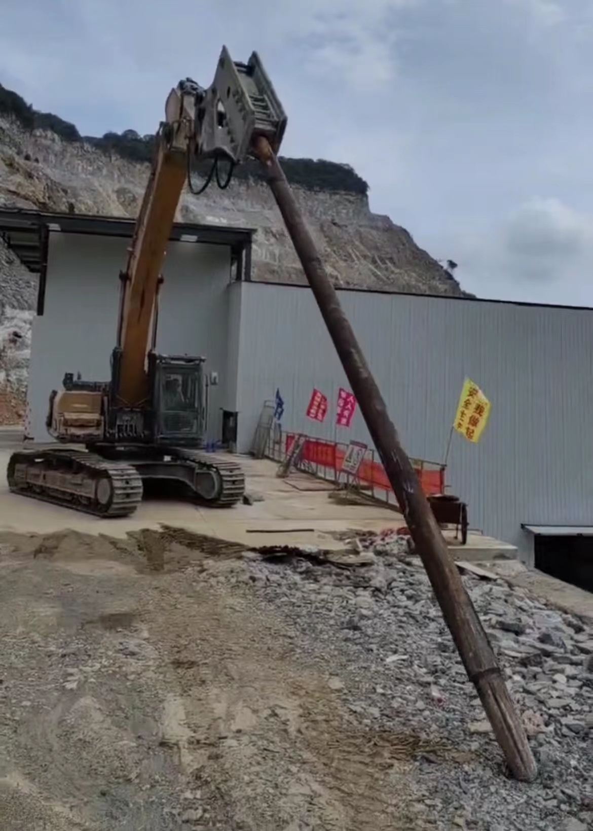 8月27日,都安礦將三一375型挖掘機所配備液壓破碎錘進行技改,定制7.7米長炮釬替換原始1.3米長炮釬,增加設(shè)備作業(yè)高度米有余,成功將之前設(shè)備作業(yè)高度受限部位險情排除。